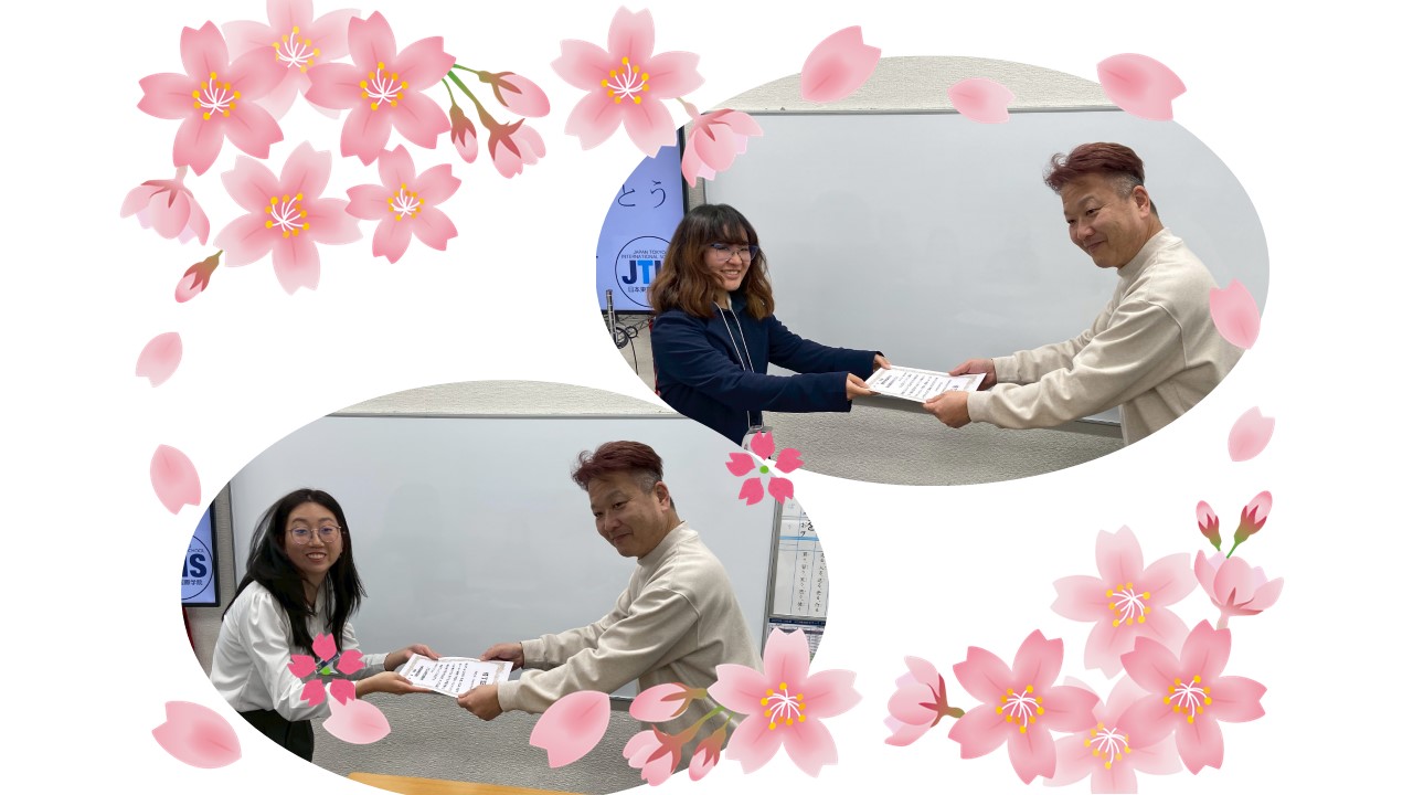 修了式では、研修生の2人が、JTISで学んだことや、帰国後にどのように日本語教育に生かしていきたいかについて発表してもらいました^^